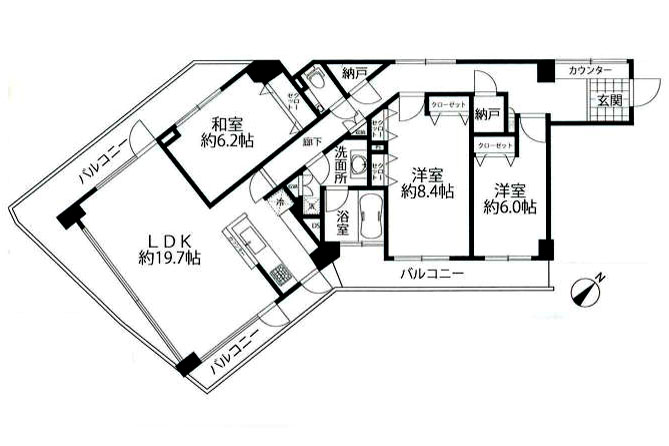 LDK19.7畳 和室6.2畳 洋室8.4畳 洋室6.0畳 |